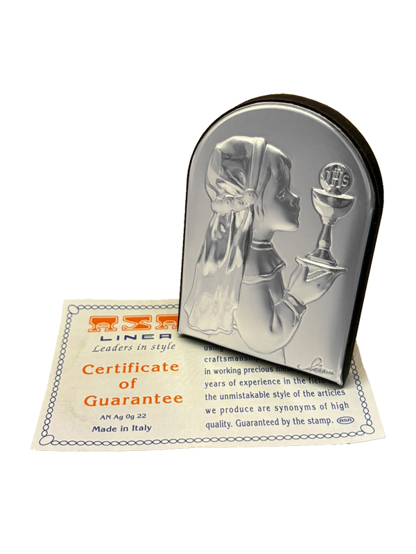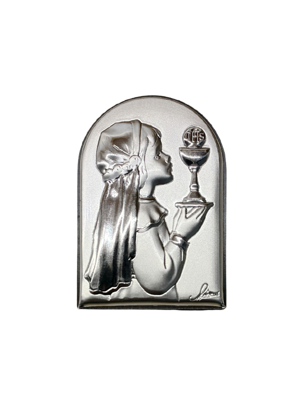 Bas relief plaqué argent fille Bas relief de première communion plaqué argent – Fille