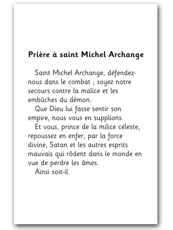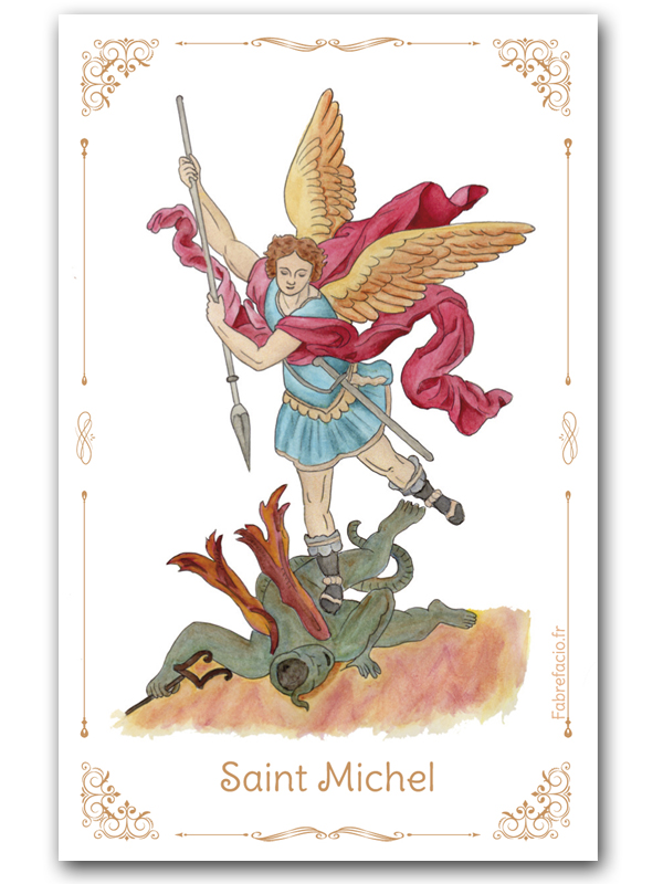 Au verso, vous trouverez une prière à saint Michel archange, idéalement récitée pour obtenir protection, force et courage dans les épreuves.